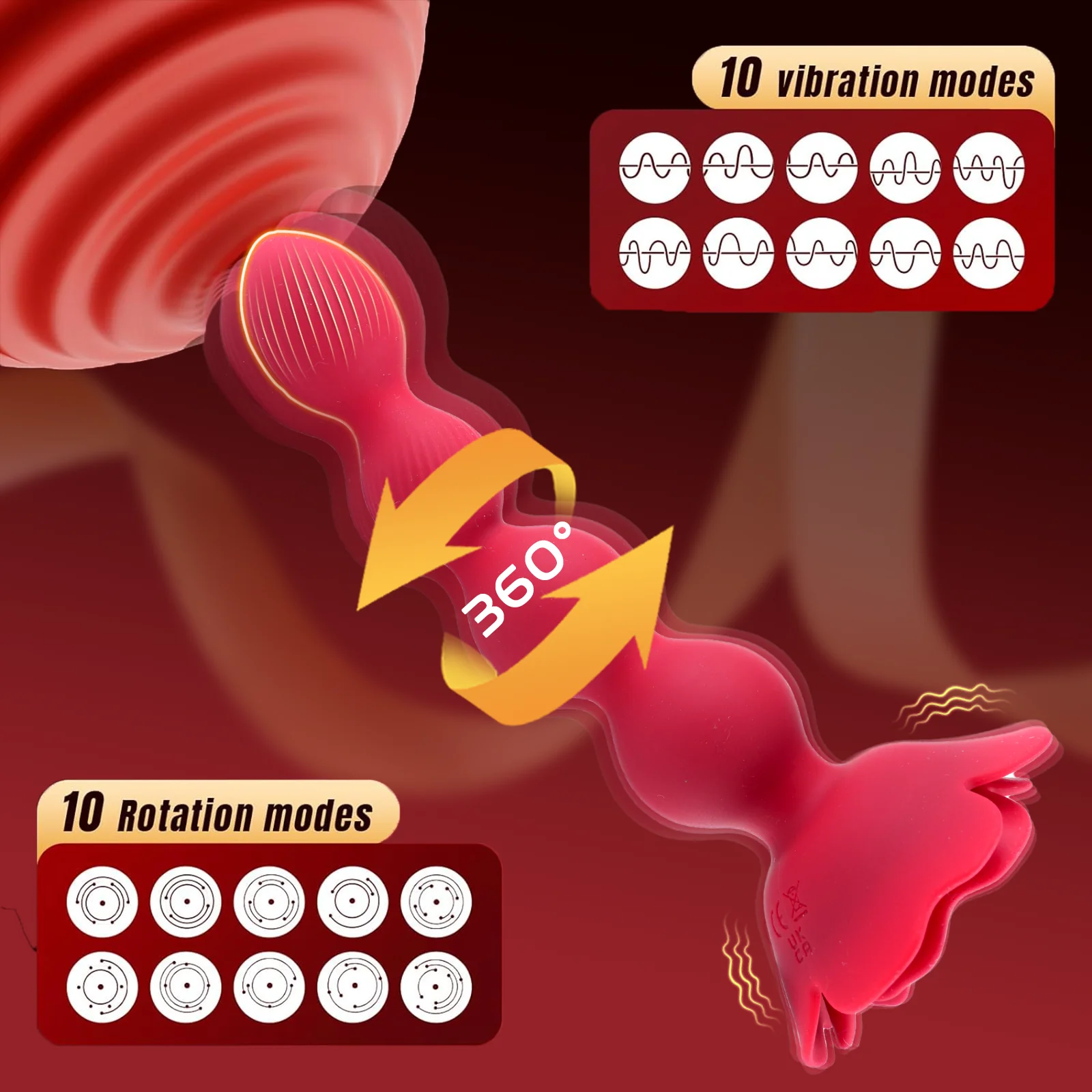 Rose Anal Beads - Flexible Anal Sex Toys with 10 Rotate Twist and Vibrating Modes
