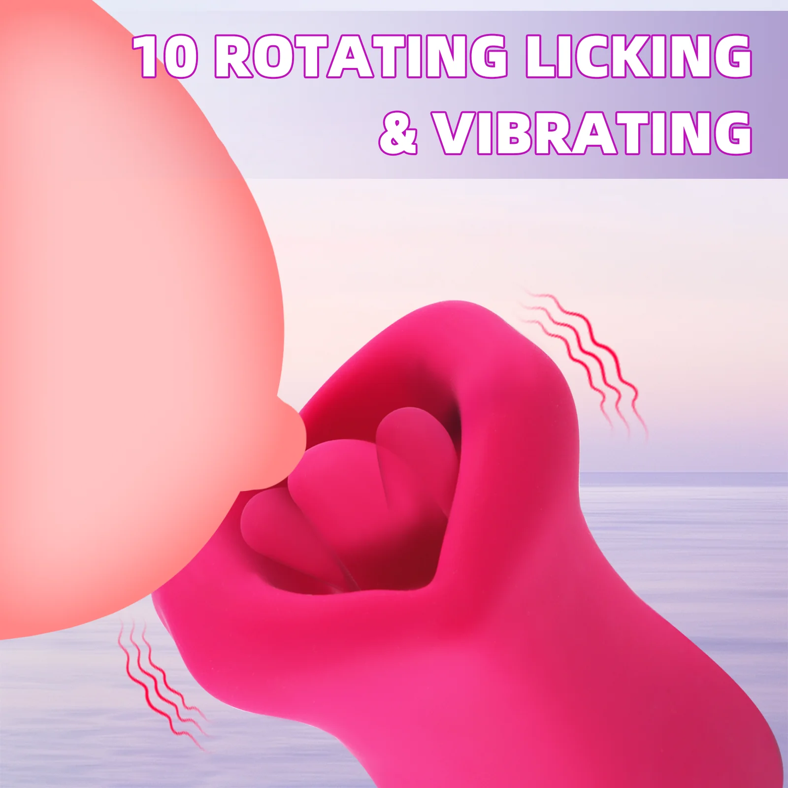 Tongue Rose Sex Stimulator for Women with 10 Rotating Licking and 10 Vibrating Modes